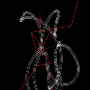 virtual body extension attached to multiple joints of a tracked skeleton of a dancer